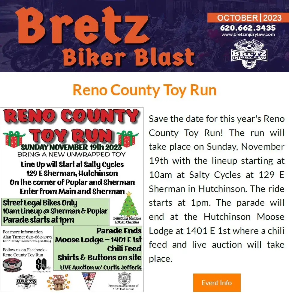 Welcome to the Bretz Injury Law Newsletter hub, your source for valuable insights, legal updates, and what’s going on in the community! We offer two distinct newsletters to cater to your specific interests – our Firm Newsletter, Bretz Blast, and our Motorcycle Enthusiasts Newsletter, Bretz Biker Blast. Subscribe today to stay informed, protected, and connected.